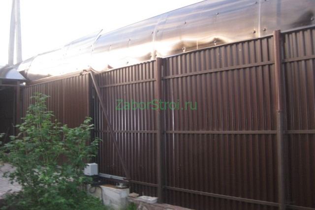 Откатные ворота из евроштакетника на винтовых сваях (цена на бетонном основании +20000р)