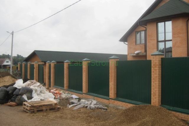 Откатные ворота из профнастила на винтовых сваях (цена на бетонном основании +20000р)
