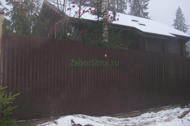 Откатные ворота из профнастила на винтовых сваях (цена на бетонном основании +20000р)
